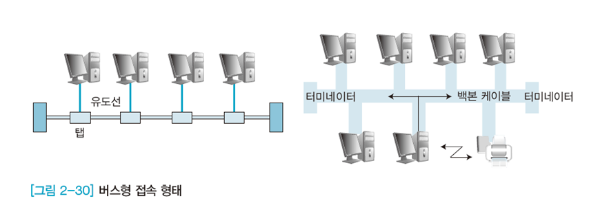 모든 노드는 하나의 케이블에 연결되어 있음. 모든 데이터가 브로드캐스트 됨.