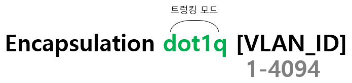 각 서브인터페이스에서는 Trunk mode에 따른 encapsulation 이 필요합니다. 트렁크 모드에는 802.1q와 Cisco 독점 트렁킹인 ISL이 있었으나 ISL이 도태되었다고 이전에 설명드렸습니다.