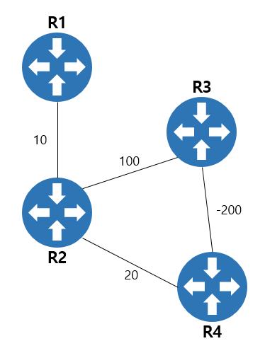 그런데 여기서 이상한 점을 하나 찾을 수 있습니다. 경로값이 음수인 R2, R3의 링크를 보겠습니다.