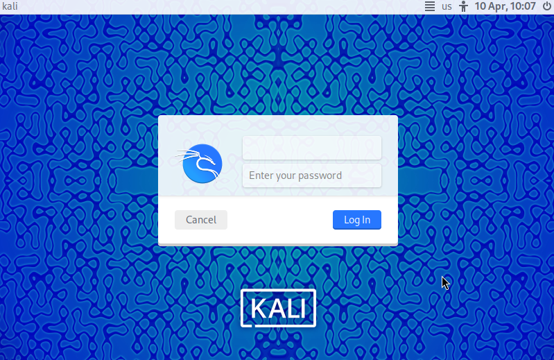 초기계정정보는 kali / kali 입니다. 이제보니 가상머신 Description 에도 써져있네요.